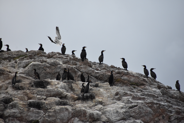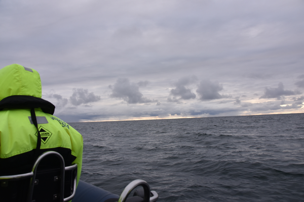 Und manchmal kommen Wahnsinnige bei 10 Grad und Wind mit Schlauchschnellbooten vorbei.
