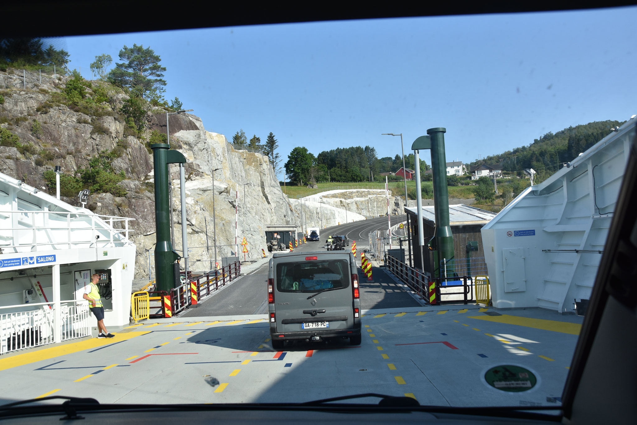 Da fährt man einfach so von Fjord zu Fjord und plötzlich endet die Straße im Wasser: Fährverkehr. Ganz selbstverständlich wird der gesamte Autoverkehr immer wieder per Schiff über die charakteristischen Meerarme gehievt. Der Stau schwimmt zart schaukelnd vor sich hin: Entschleunigung: