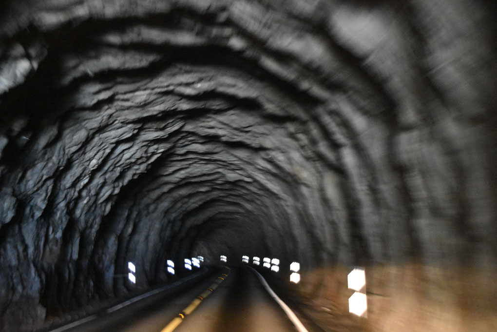 Allerdings gibt es auch Röhren im Berg, ganz ohne Beleuchtung, in denen man sich eher wie in einer Geisterbahn fühlt:
