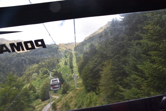 Mit schnödem Nahverkehr hat unser jüngster Ausflug in die Pyrenäen wirklich nichts zu tun. Zuerst muss der Bulli auf 1250 Meter klettern und darf dort ausruhen. Wir fahren mit einer Seilbahn weiter, die uns auf etwa 1900 Meter bringt: