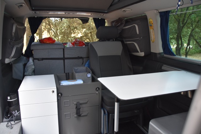 Der Bulli war zuvor fast perfekt ausgestattet, aber eben nur fast: Im Erdgeschoss die gemütliche Sitzecke: