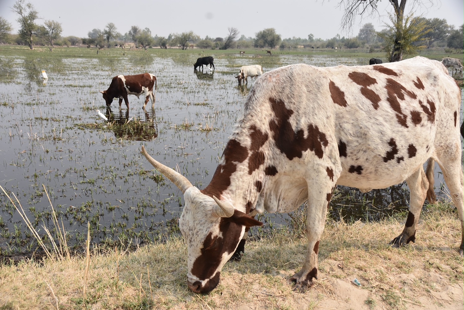Das Gelände wird von einer Wasserrinderherde „bewacht“: