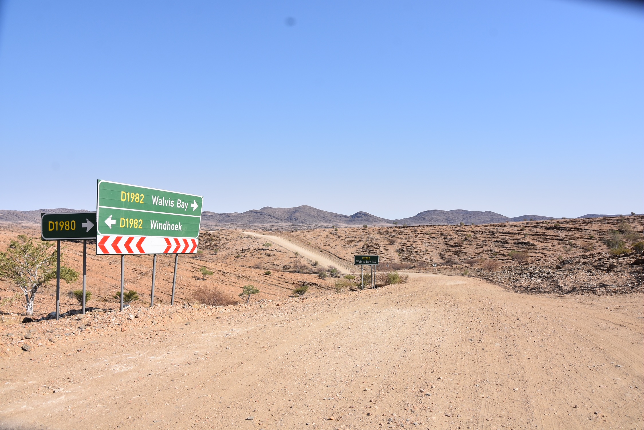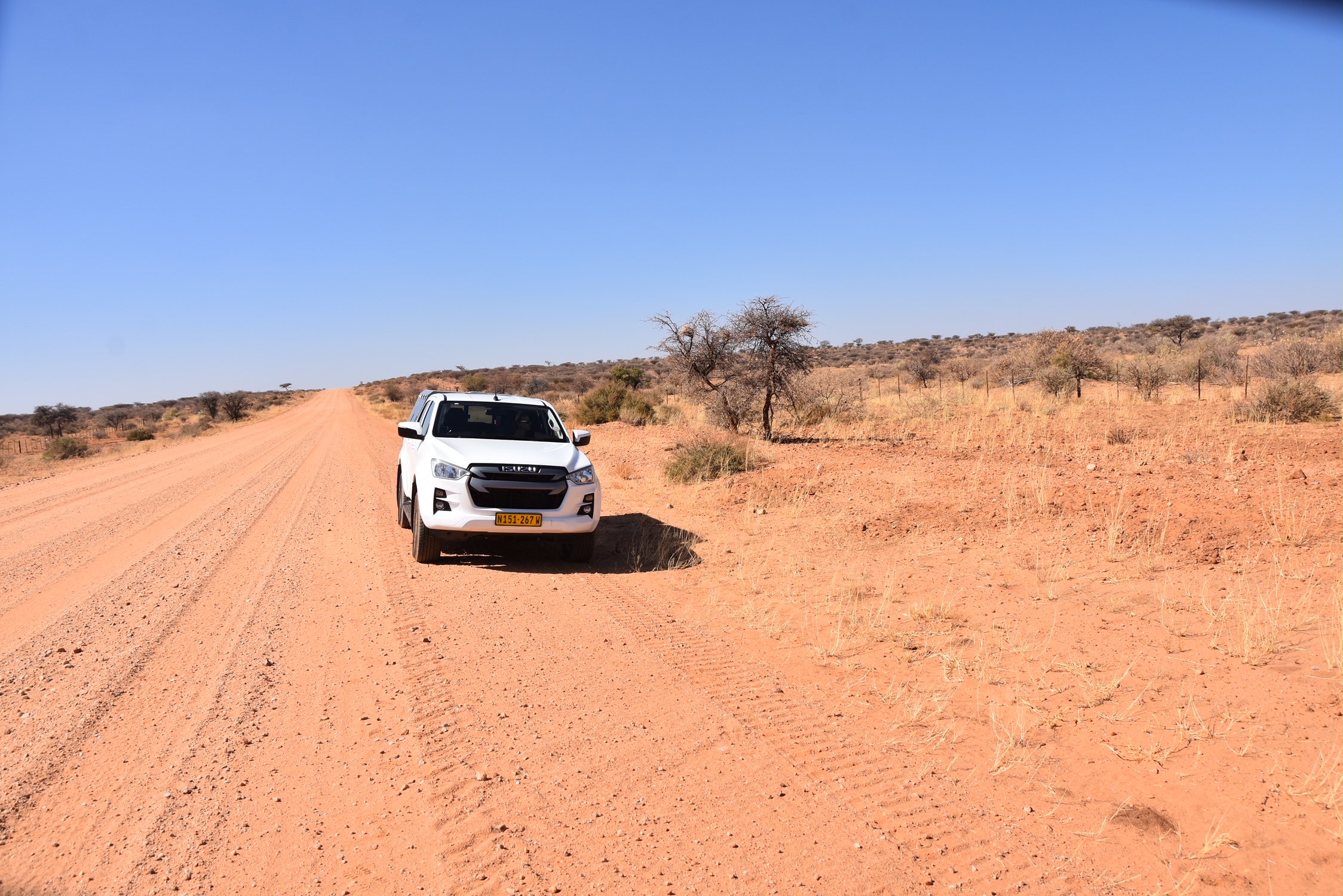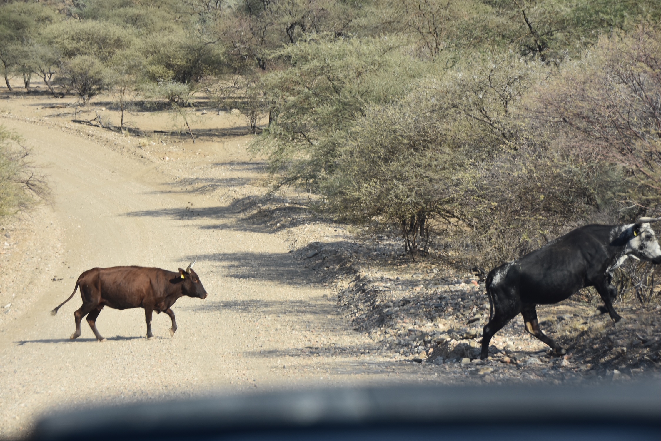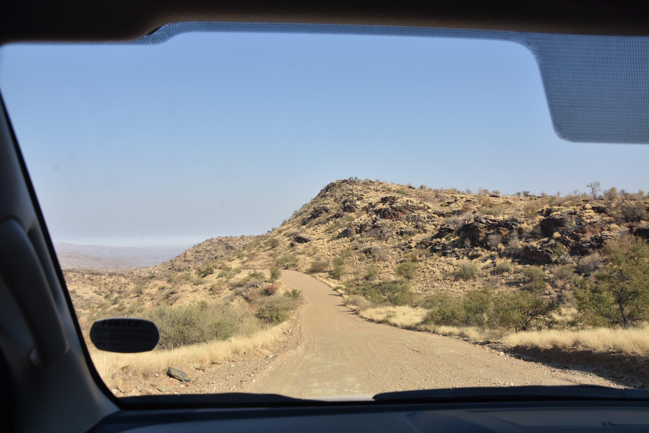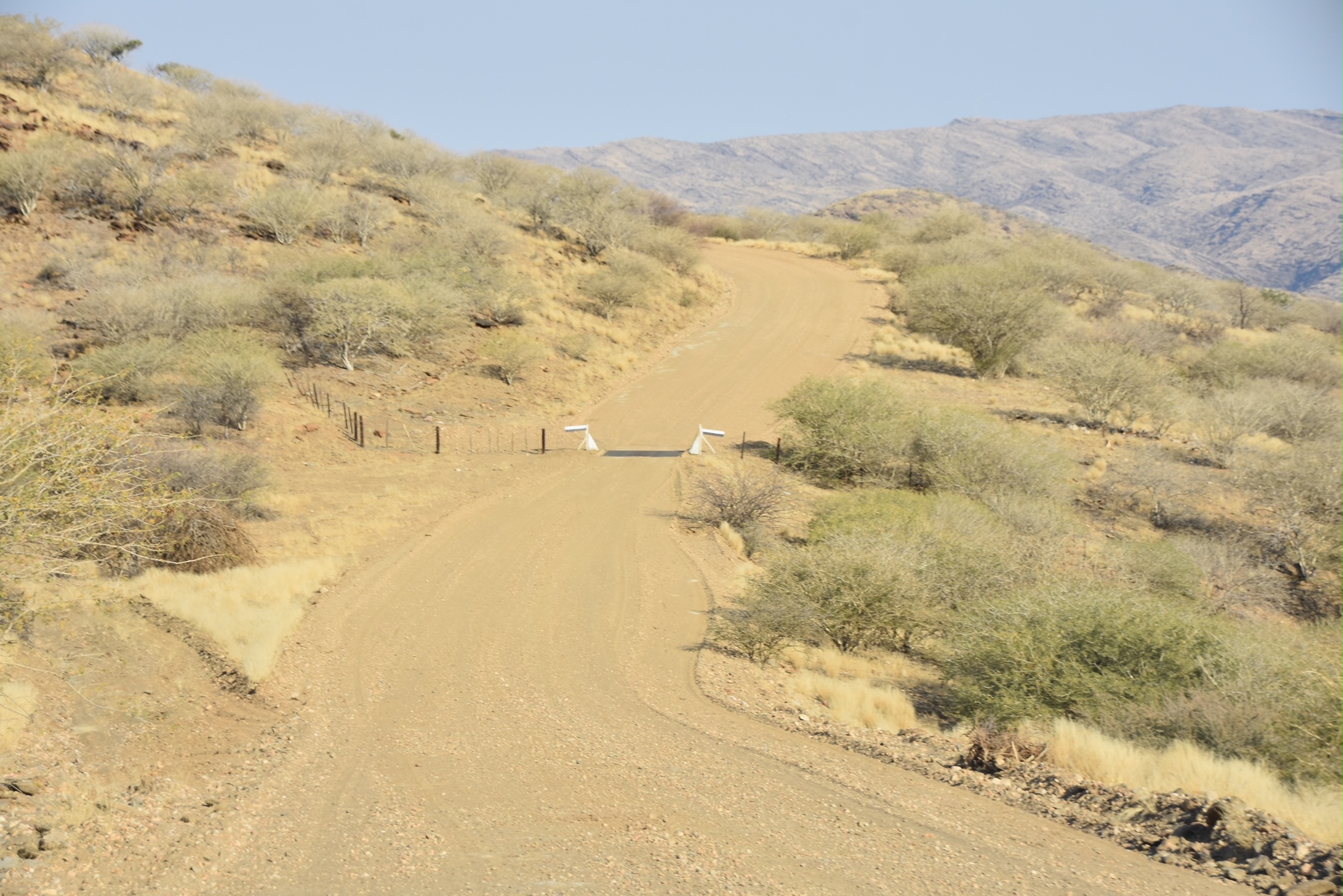 Halb rechts war falsch, was wir allerdings erst dann eingesehen haben als - nach selbst für namibische Verhältnisse anspruchsvollen „Fahrbahn“ - „Untergründen“ - ein offenbar absichtlich gefällter Baum jede Weiterfahrt physikalisch unmöglich machte. Aus Gründen wurde dieser Teil nicht fotografisch dokumentiert, weshalb wir nach einer sch… Rückfahrt hier weitermachen: